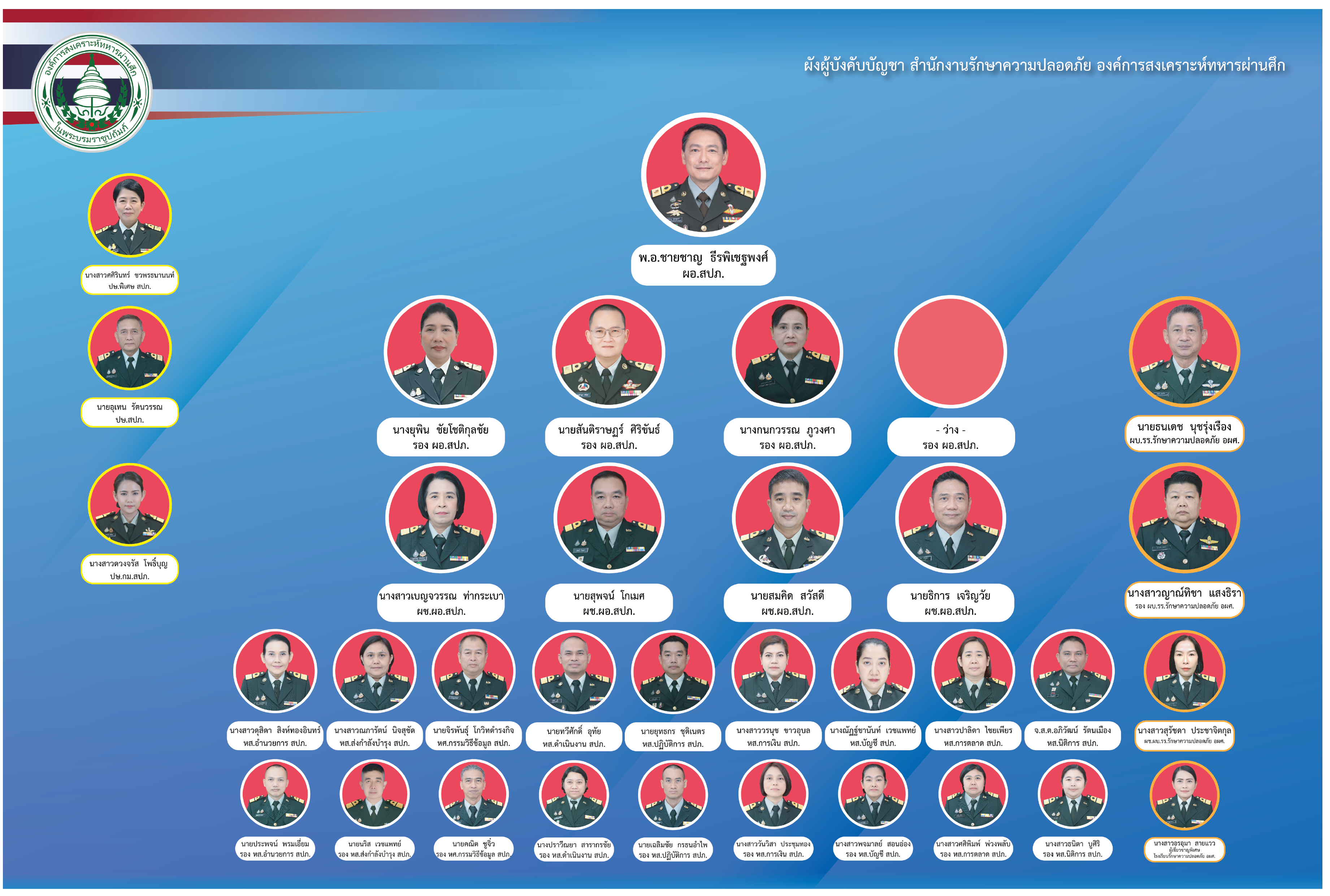ผังผู้บังคับบัญชา สปภ.อผศ. ผังผู้บังคับบัญชาสำนักงานรักษาความปลอดภัย องค์การสงเคราะห์ทหารผ่านศึก Facebook iconFacebookTwitter iconTwitterLINE iconLine