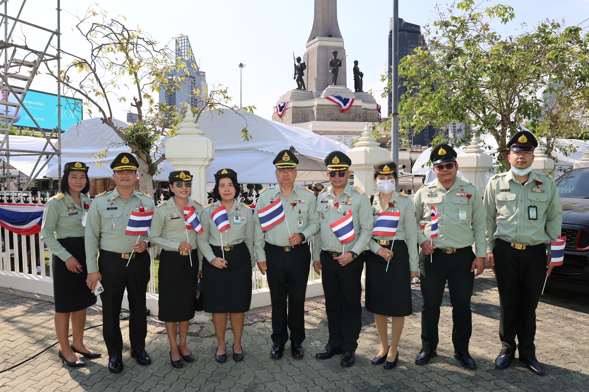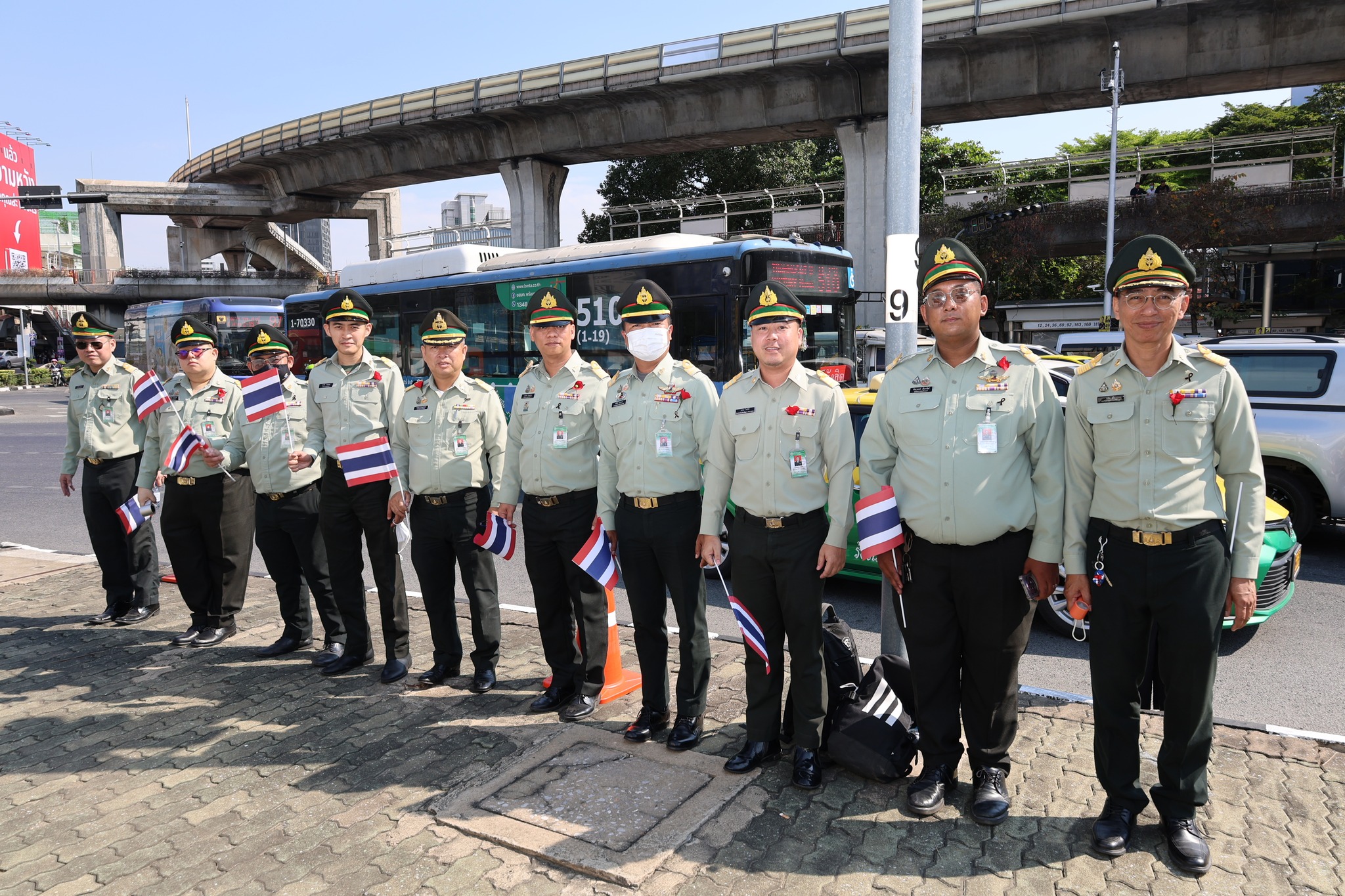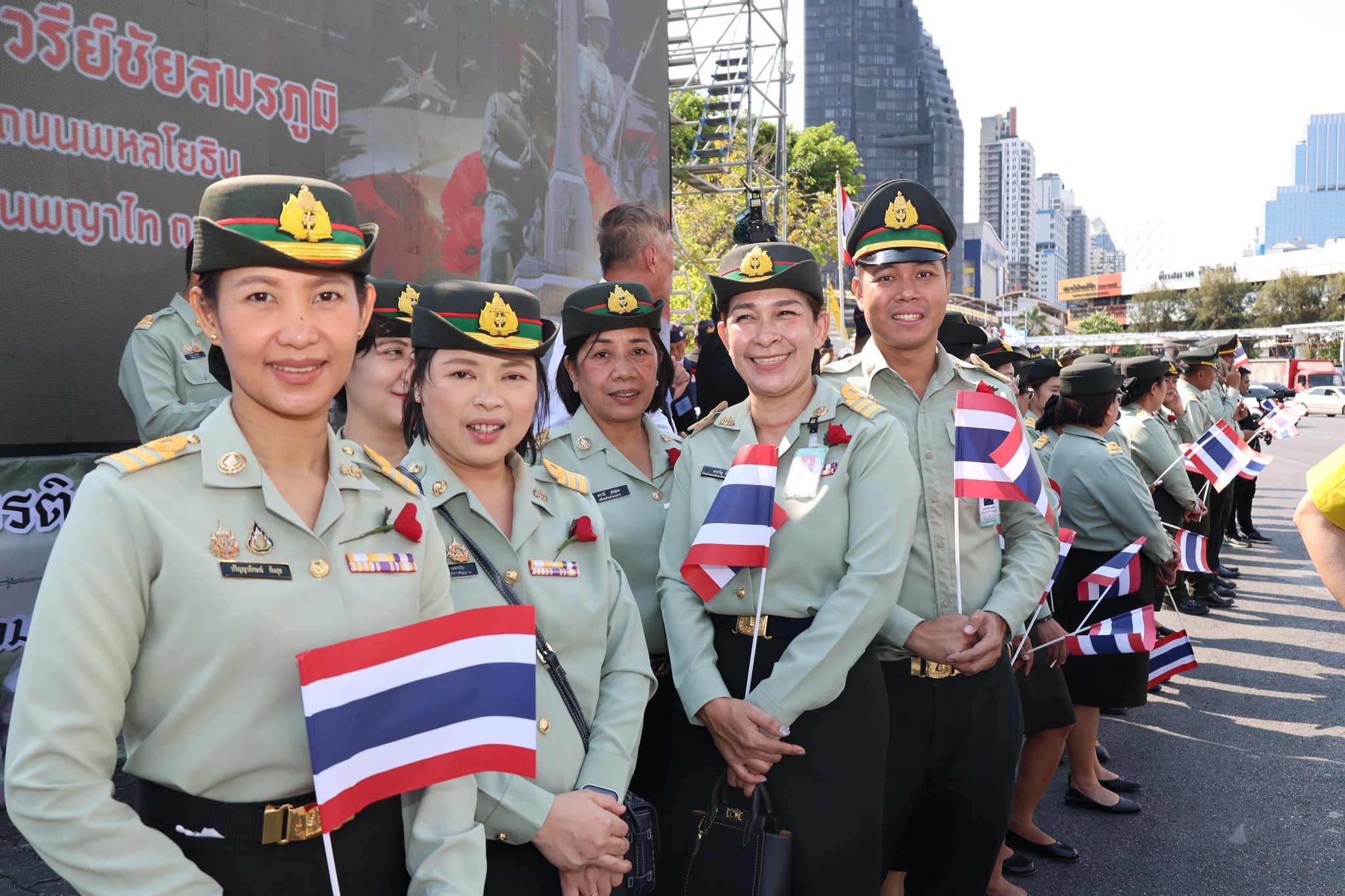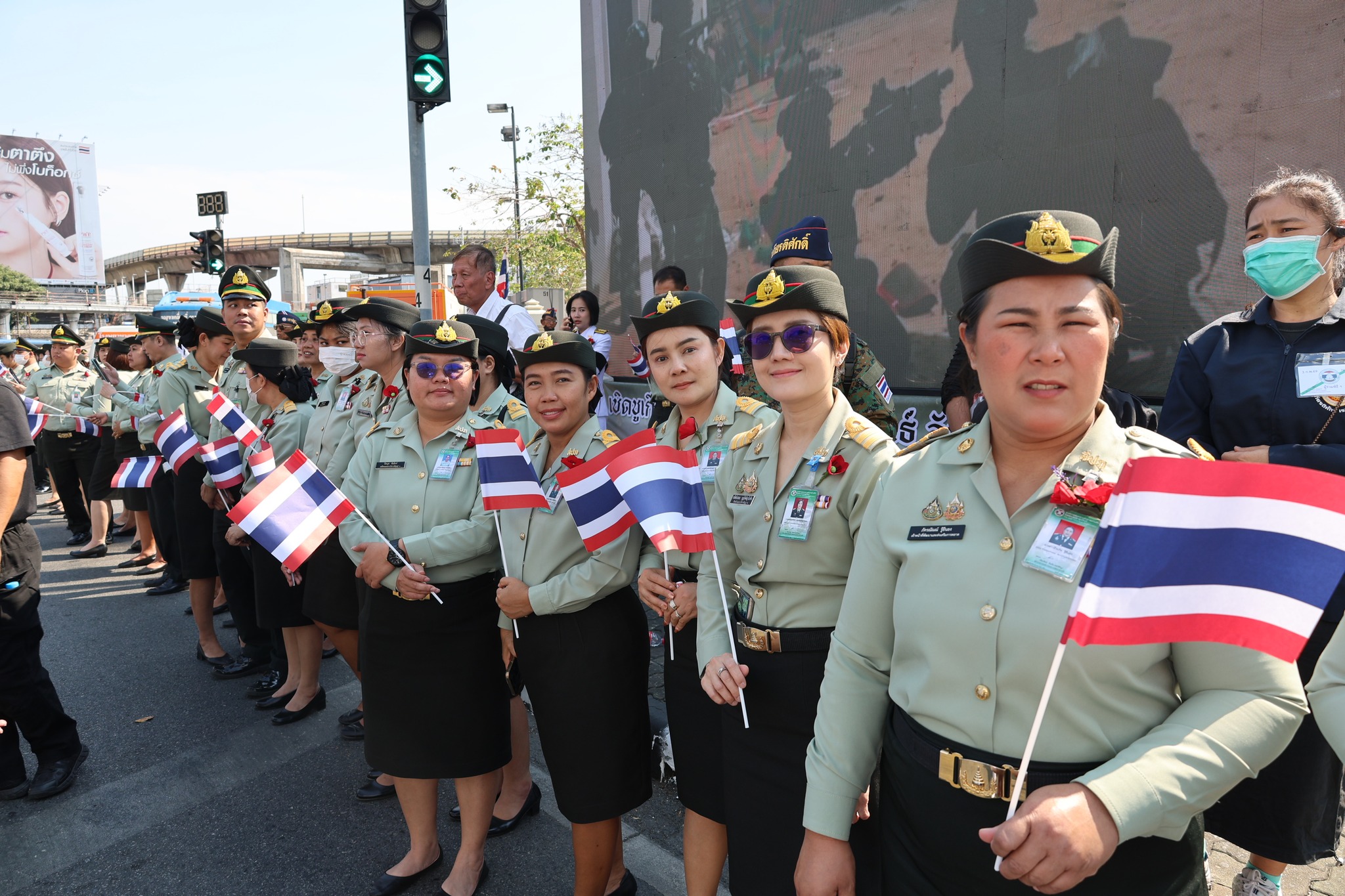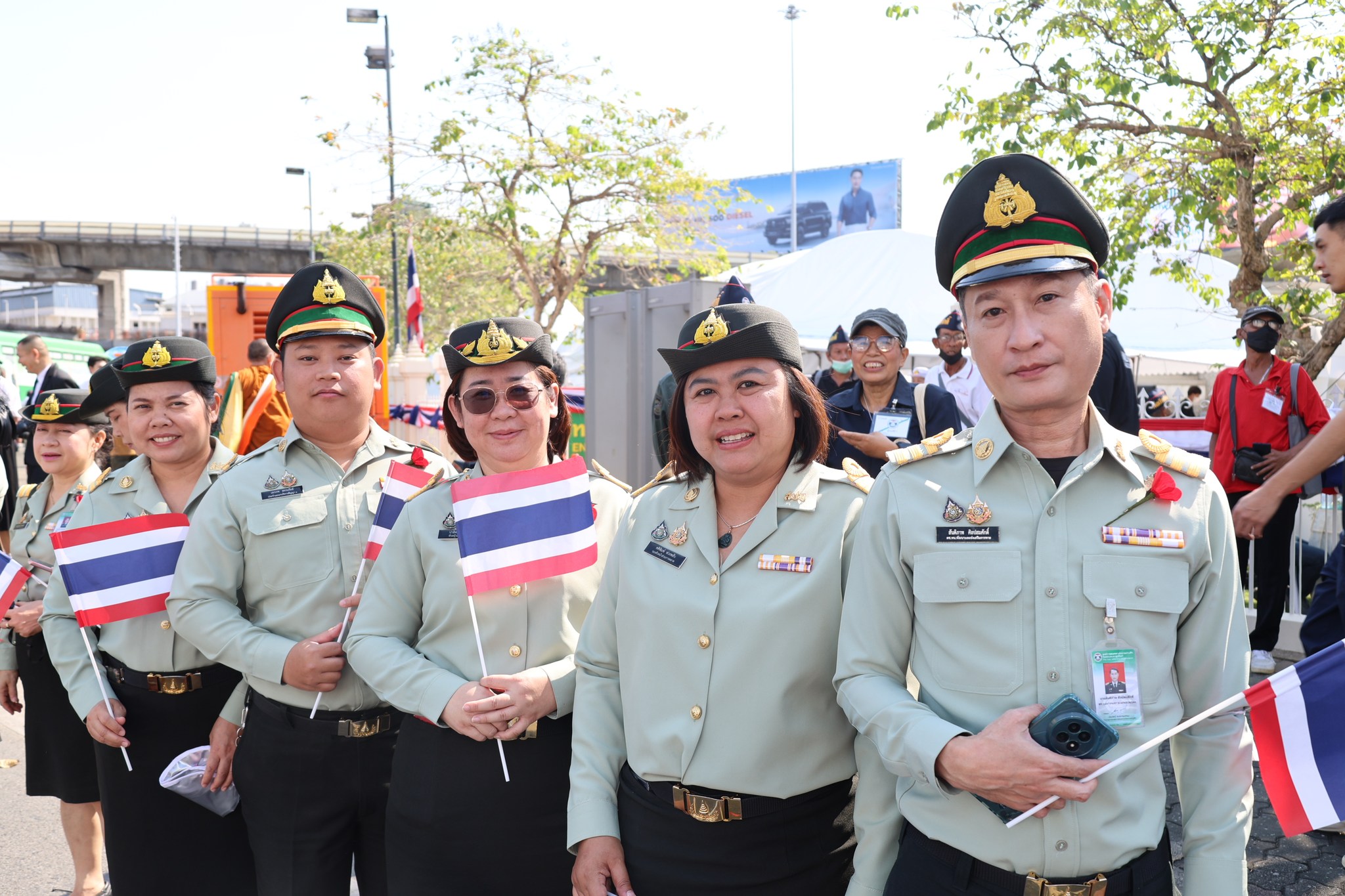 เจ้าหน้าที่ สำนักงานรักษาความปลอดภัย อผศ. เข้าร่วมกิจกรรมโบกธงเพื่อเป็นกำลังใจให้แก่ทหารผ่านศึก ที่เข้าร่วมพิธีเดินขบวนพาเหรด ทั้ง 7 กรณีสงคราม ตลอดเส้นทางการเดินจากองค์การสงเคราะห์ทหารผ่านศึกไปยังอนุสาวรีย์ชัยสมรภูมิ