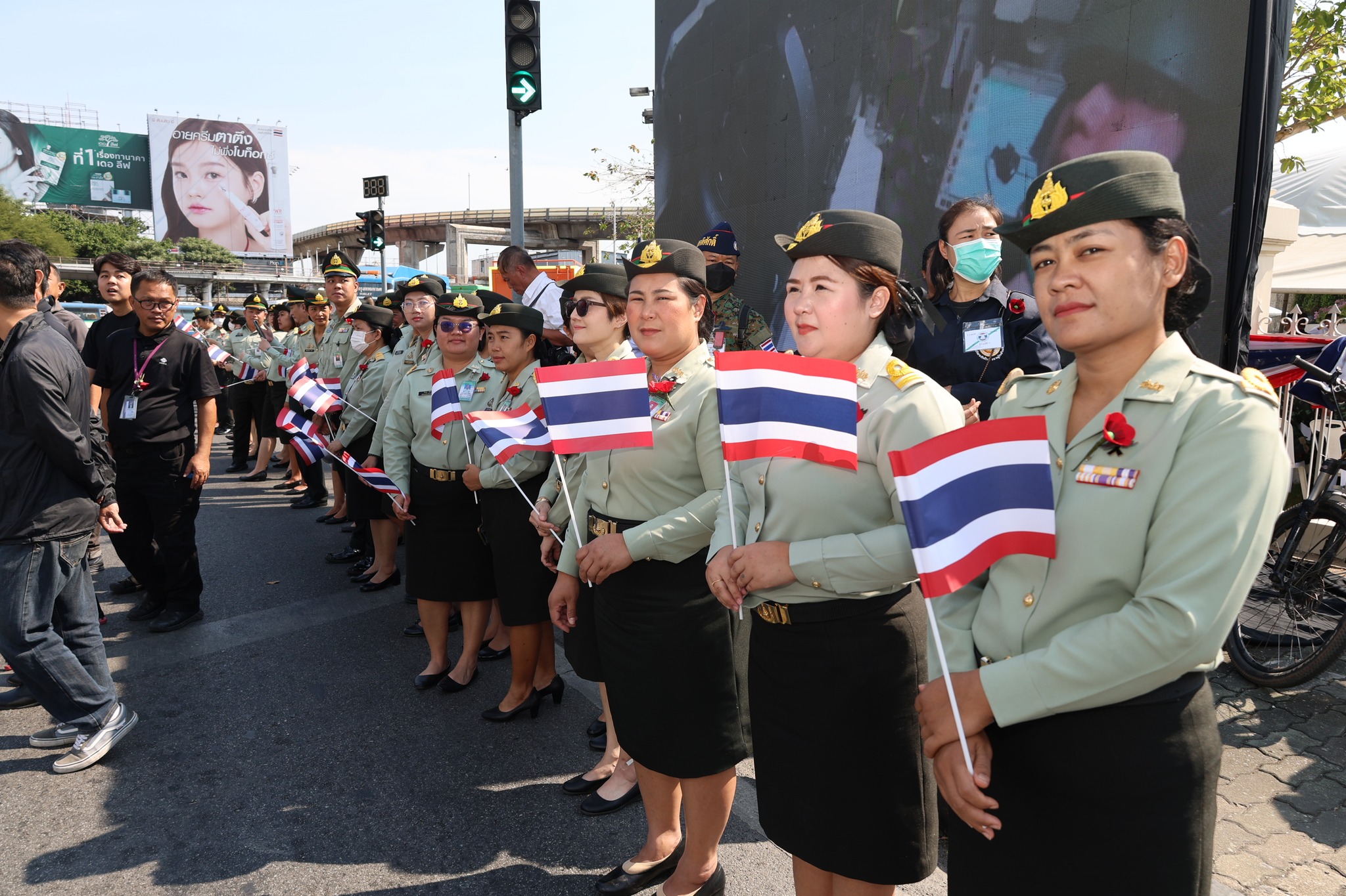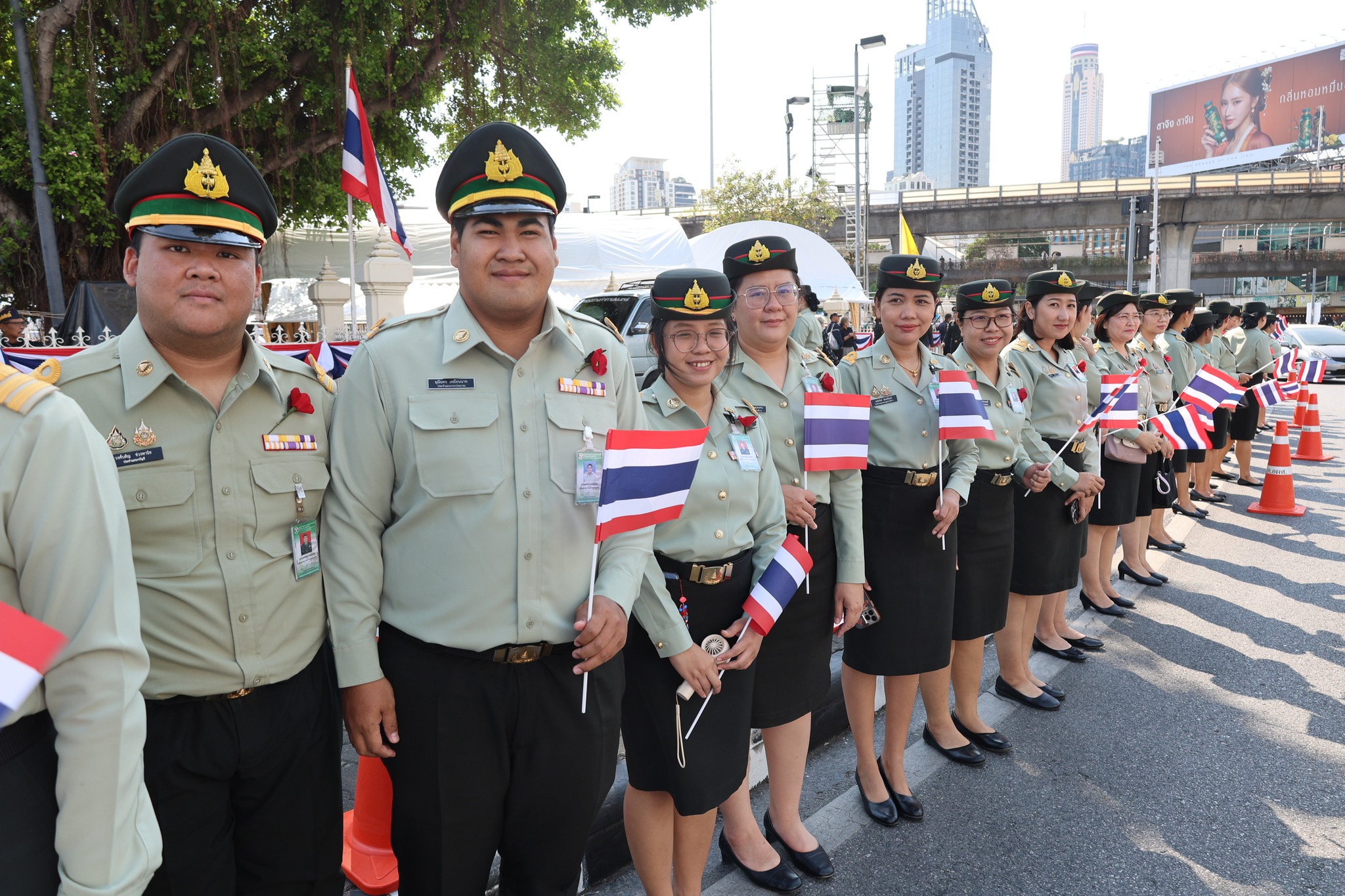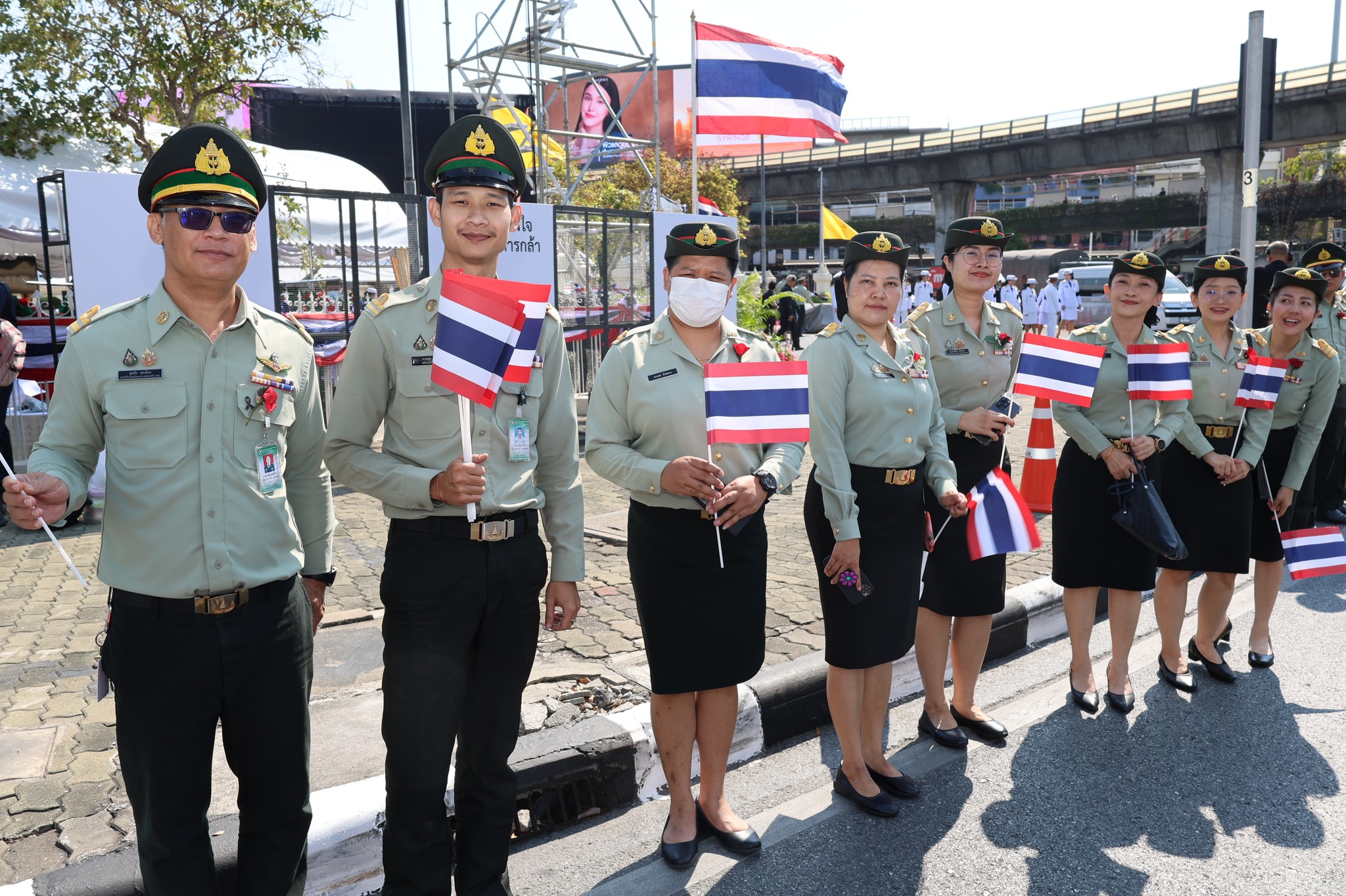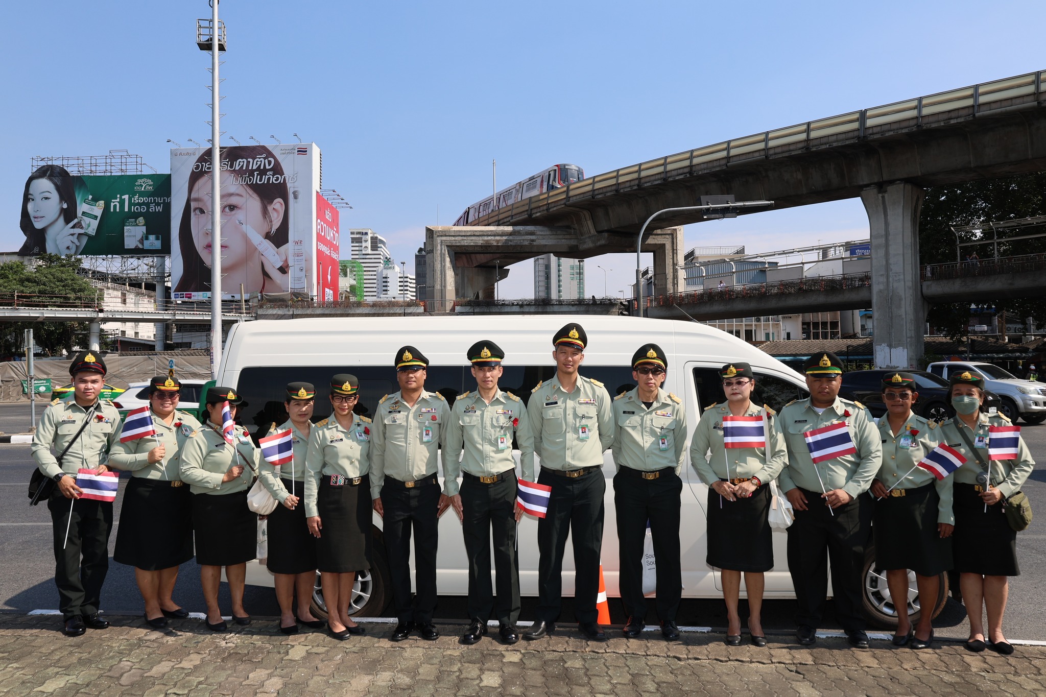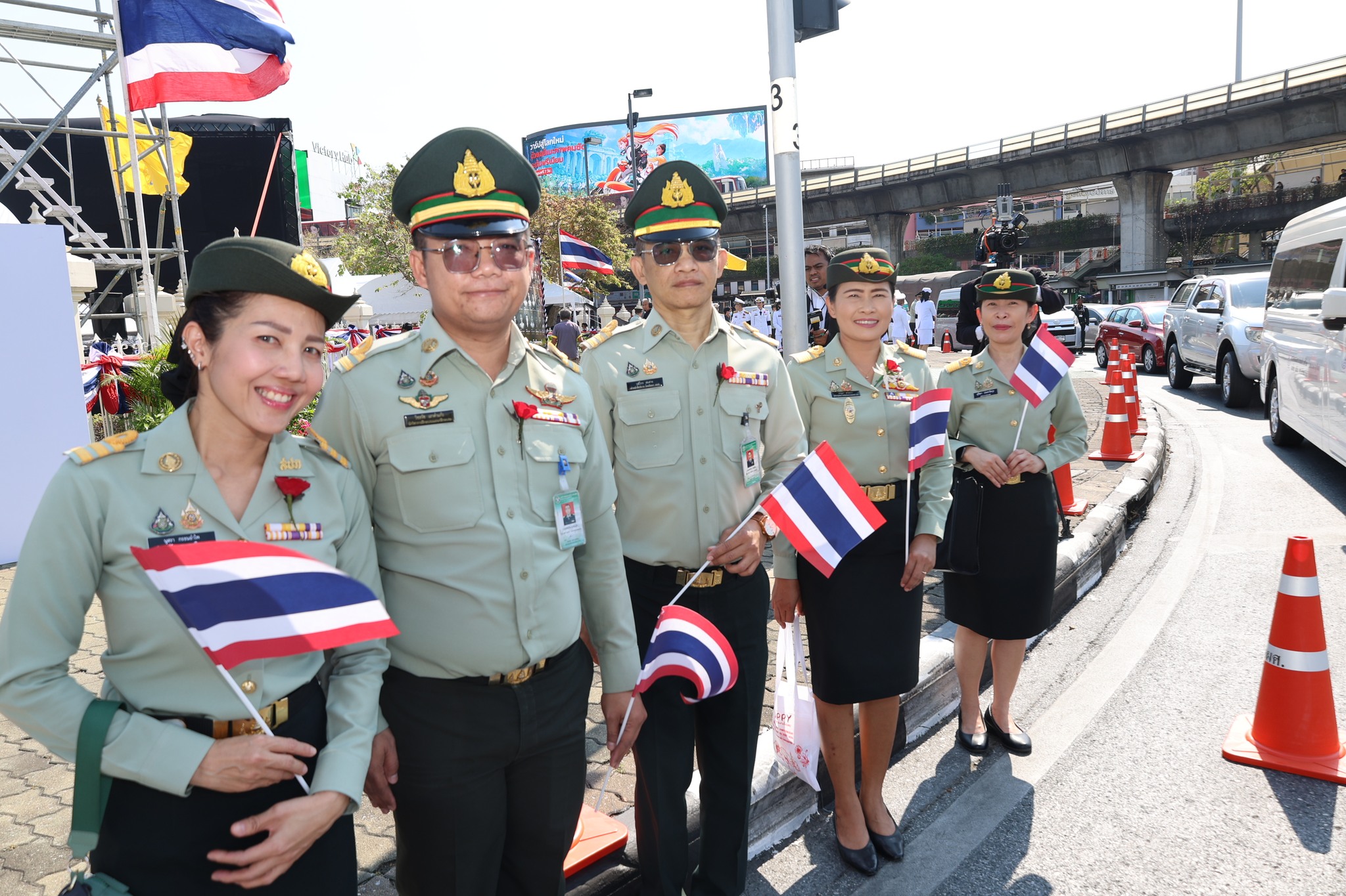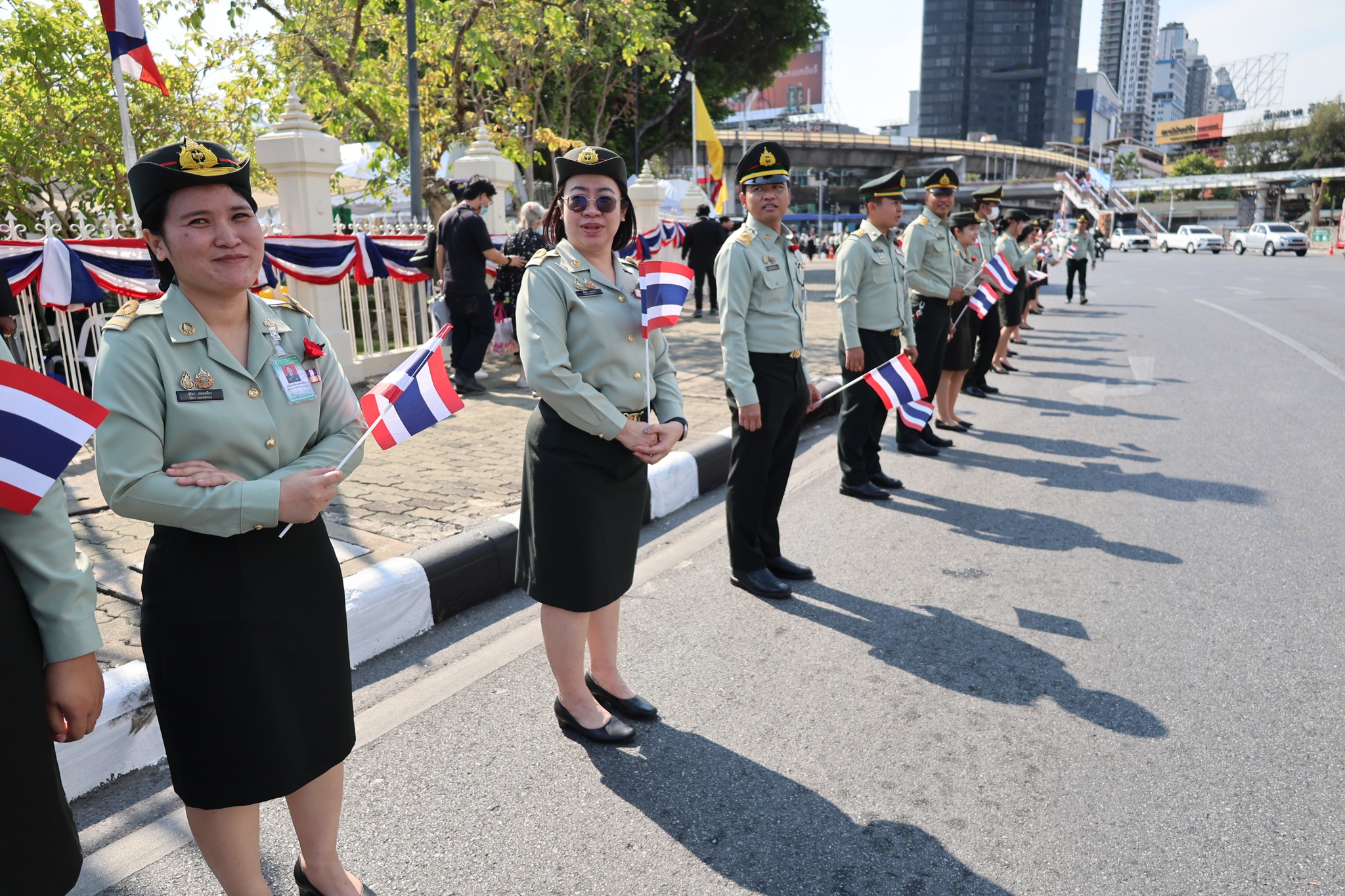 เจ้าหน้าที่ สำนักงานรักษาความปลอดภัย อผศ. เข้าร่วมกิจกรรมโบกธงเพื่อเป็นกำลังใจให้แก่ทหารผ่านศึก ที่เข้าร่วมพิธีเดินขบวนพาเหรด ทั้ง 7 กรณีสงคราม ตลอดเส้นทางการเดินจากองค์การสงเคราะห์ทหารผ่านศึกไปยังอนุสาวรีย์ชัยสมรภูมิ