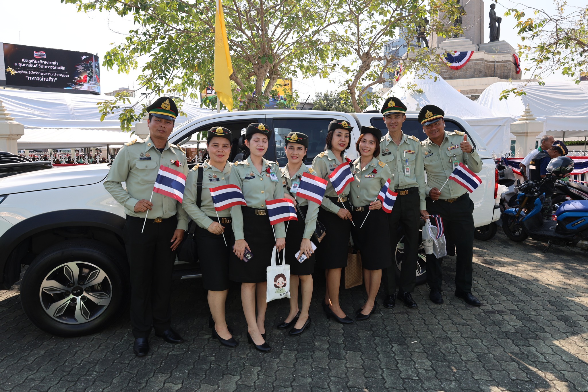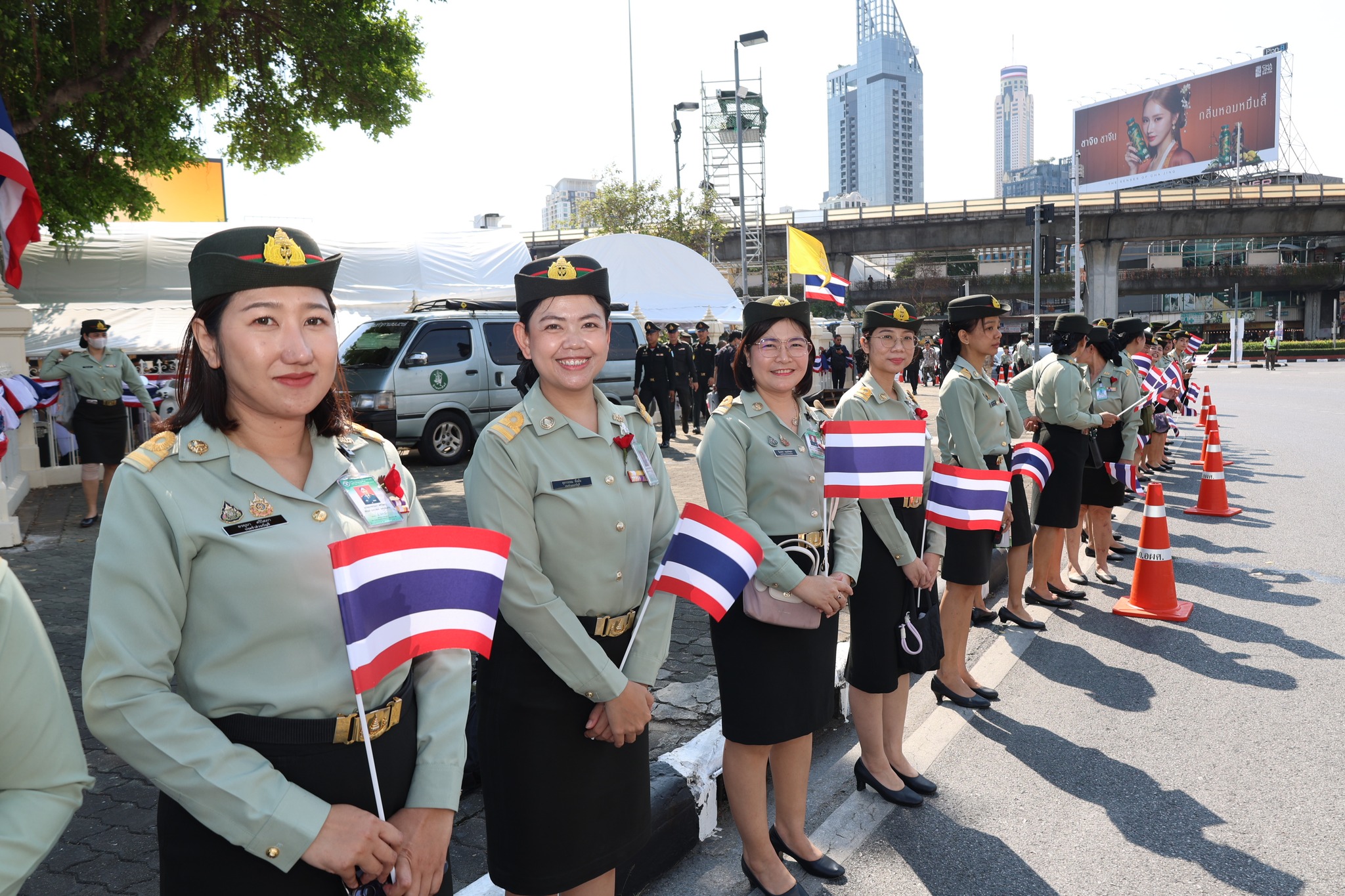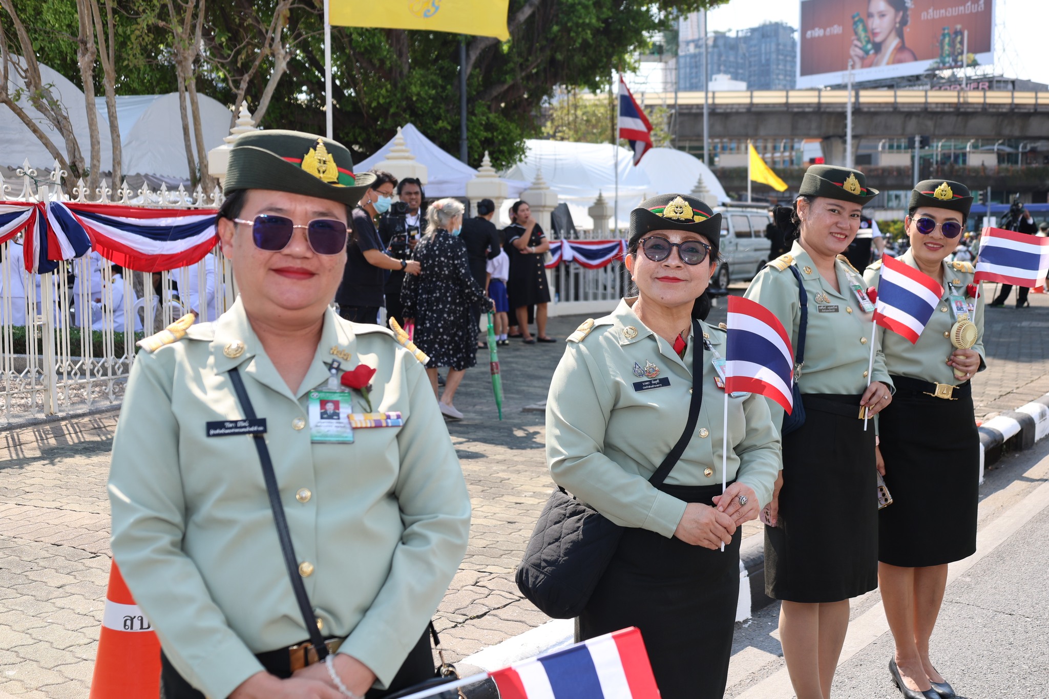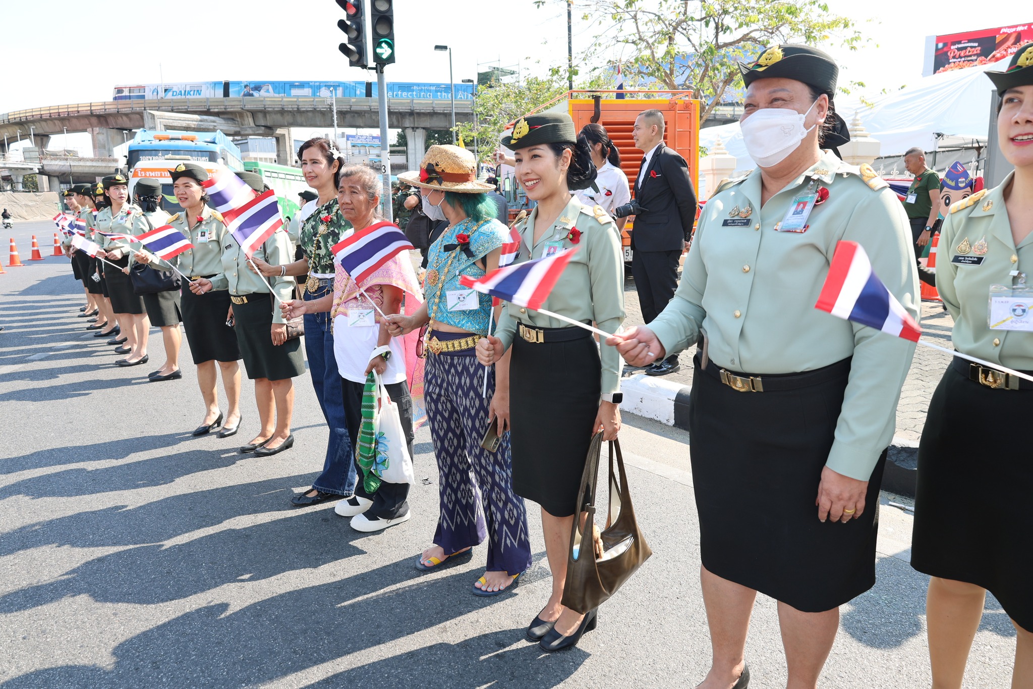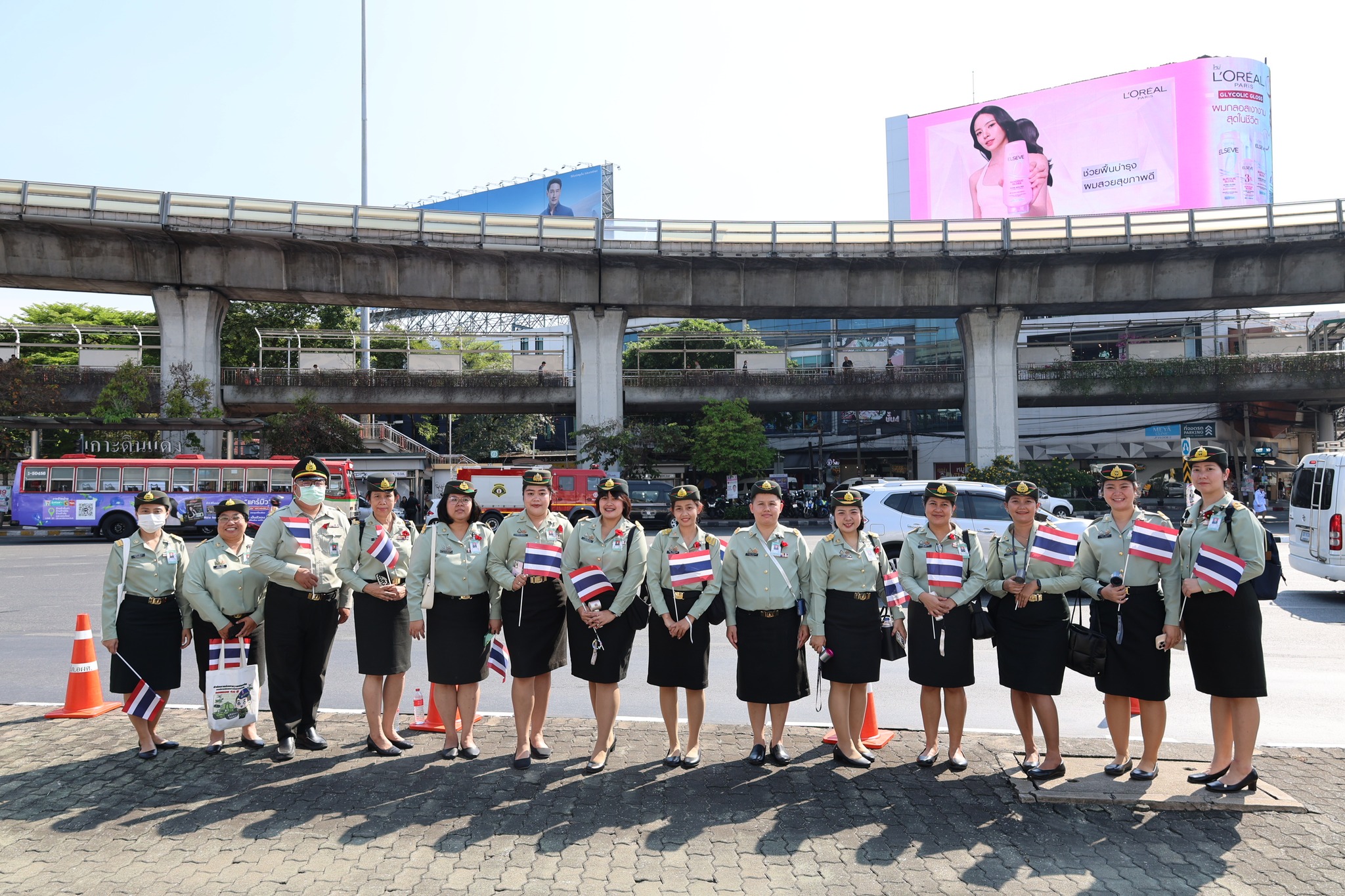 เจ้าหน้าที่ สำนักงานรักษาความปลอดภัย อผศ. เข้าร่วมกิจกรรมโบกธงเพื่อเป็นกำลังใจให้แก่ทหารผ่านศึก ที่เข้าร่วมพิธีเดินขบวนพาเหรด ทั้ง 7 กรณีสงคราม ตลอดเส้นทางการเดินจากองค์การสงเคราะห์ทหารผ่านศึกไปยังอนุสาวรีย์ชัยสมรภูมิ
