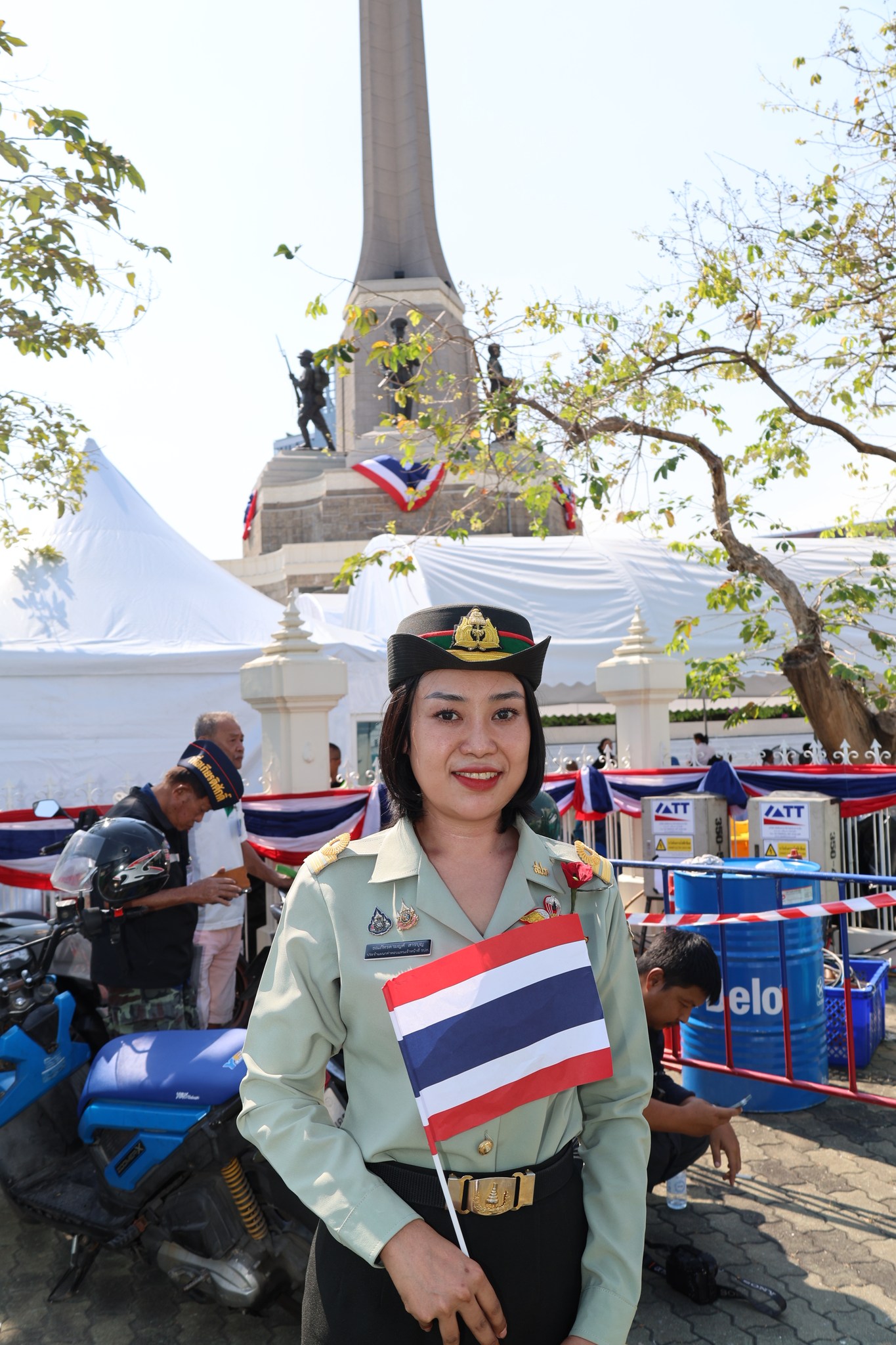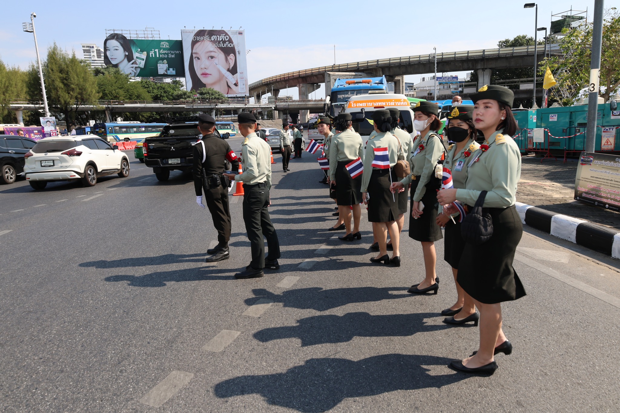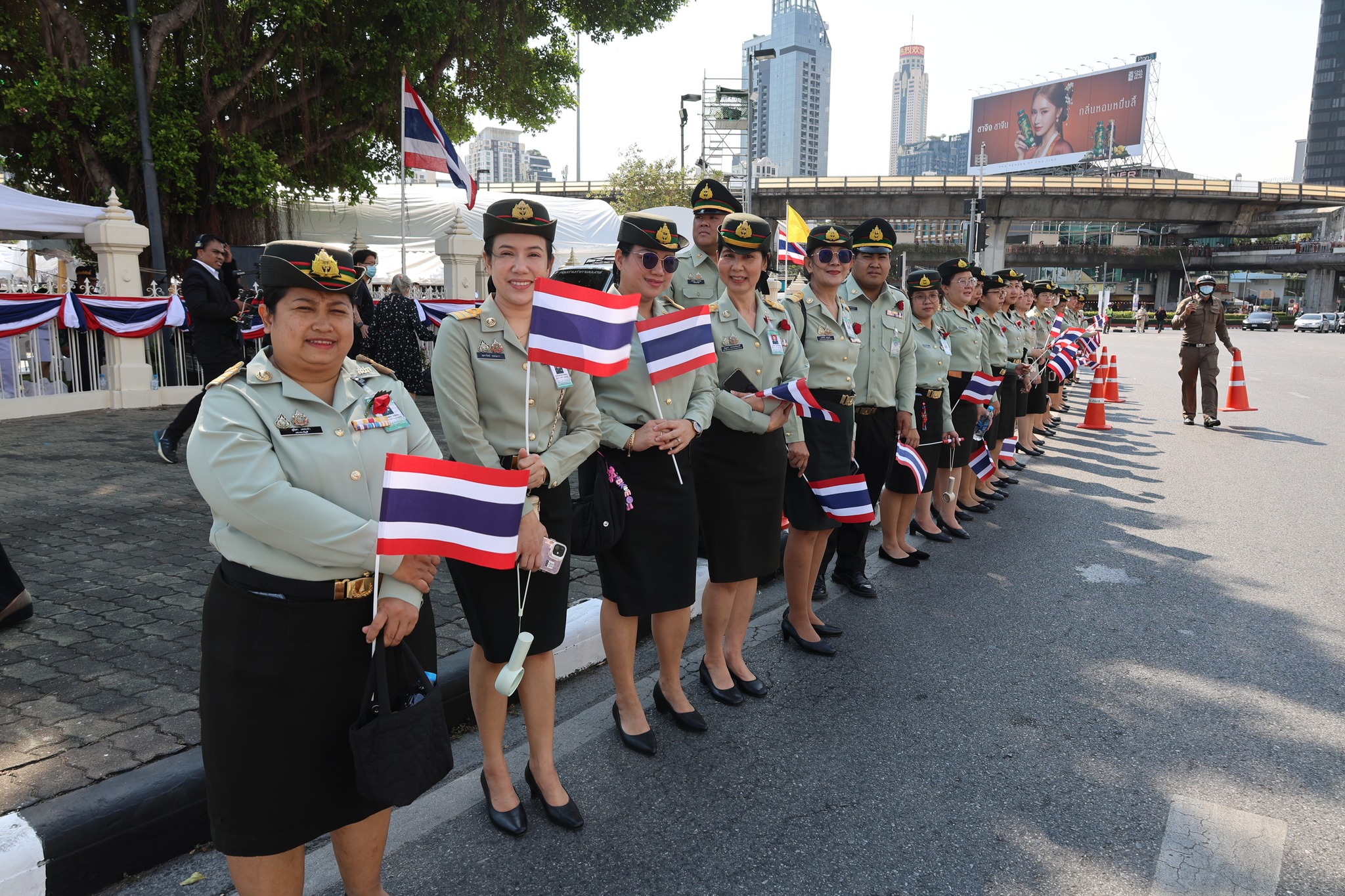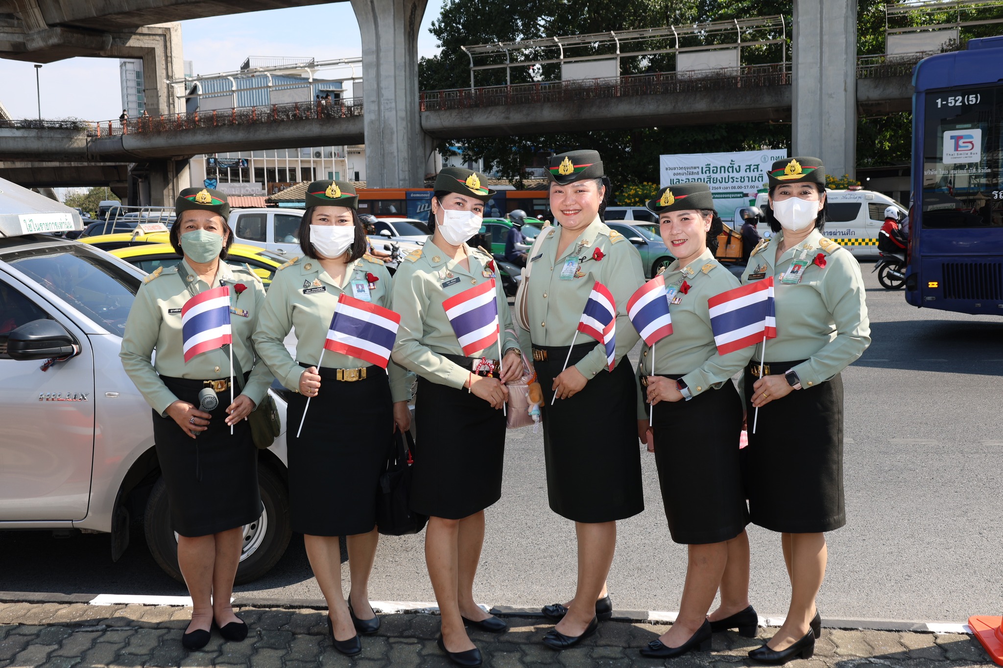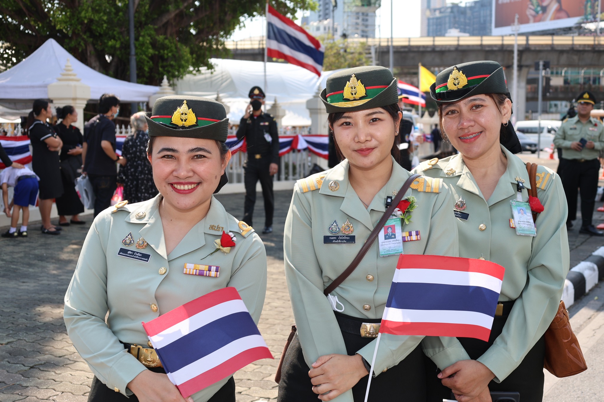 เจ้าหน้าที่ สำนักงานรักษาความปลอดภัย อผศ. เข้าร่วมกิจกรรมโบกธงเพื่อเป็นกำลังใจให้แก่ทหารผ่านศึก ที่เข้าร่วมพิธีเดินขบวนพาเหรด ทั้ง 7 กรณีสงคราม ตลอดเส้นทางการเดินจากองค์การสงเคราะห์ทหารผ่านศึกไปยังอนุสาวรีย์ชัยสมรภูมิ