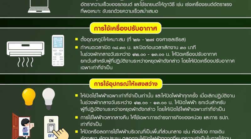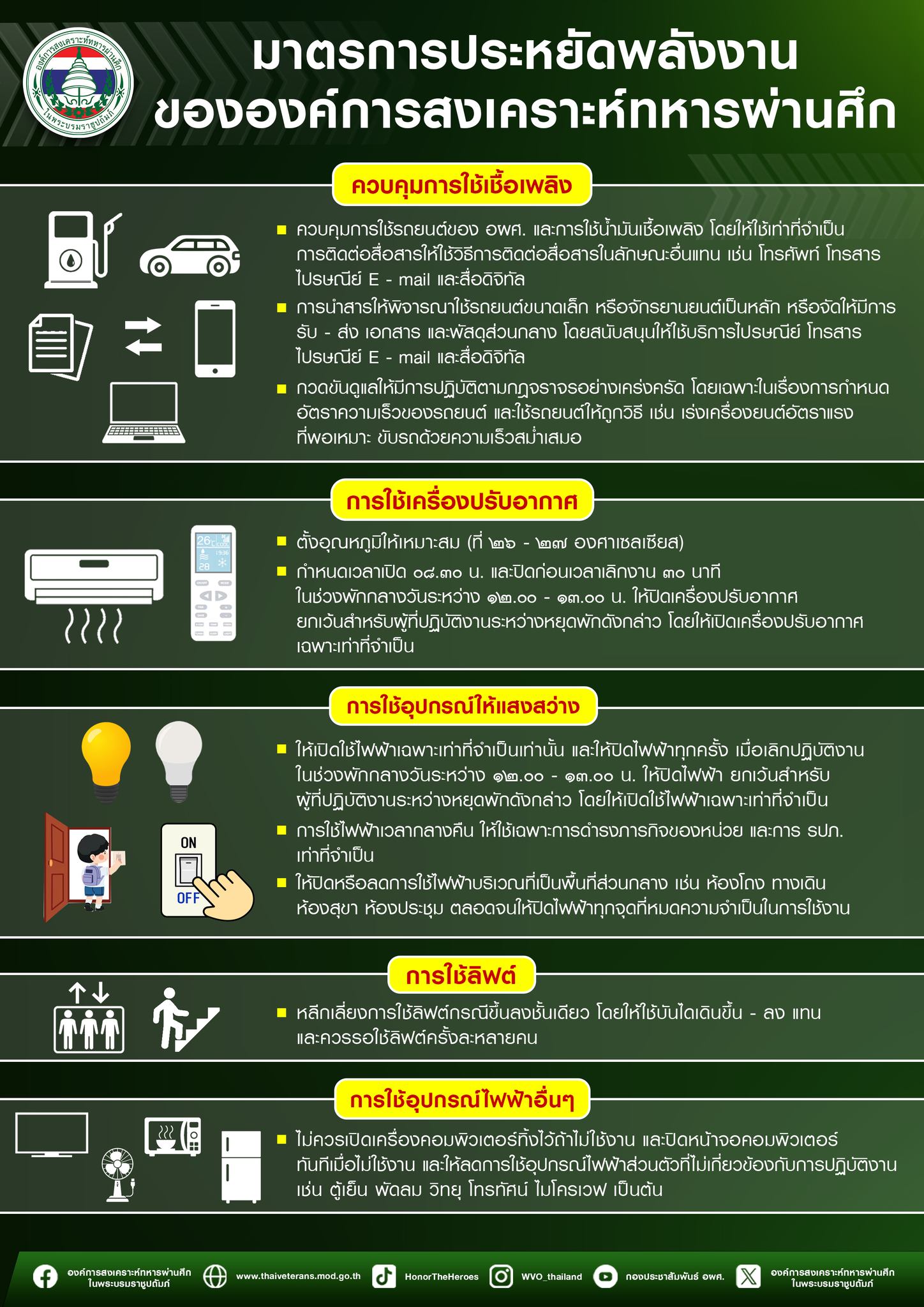 องค์การสงเคราะห์ทหารผ่านศึกได้กำหนดมาตรการประหยัดพลังงานภายในหน่วยงาน